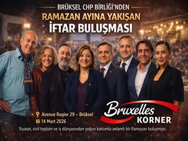 Brüksel’de Ramazan Sofrası: CHP Birliği’nin İftar Programı Farklı Kesimleri BuluşturduHaber – Bruxelles Korner – Kadir DuranBrüksel’de Ramazan ayının birlik ve dayanışma ruhunu yansıtan anlamlı bir iftar programı düzenlendi. Brüksel CHP Birliği tarafından organize edilen buluşma, toplumun farklı kesimlerinden davetlileri aynı sofrada bir araya getirerek Ramazan’ın paylaşma kültürünü güçlü bir şekilde ortaya koydu.14 Mart 2026 tarihinde saat 18.00’de Avenue Rogier 29, Brüksel adresinde gerçekleştirilen “İftar Sofrasında Buluşuyoruz” programı, Ramazan ayının manevi atmosferini paylaşmak ve toplumsal bağları güçlendirmek amacıyla düzenlendi.Ailelerin yoğun ilgi gösterdiği programda büyükler, çocuklar, anneler ve babalar aynı sofrada buluştu. Samimi ortamı ve güçlü katılımıyla dikkat çeken gece, sadece bir iftar organizasyonu olmanın ötesinde, Brüksel’de yaşayan Türk toplumunun sosyal dayanışmasını yansıtan önemli bir buluşma olarak öne çıktı.Belçika siyasetinden katılımPrograma Belçika siyasetinden de dikkat çeken isimler katıldı. Davetliler arasında:PS Senatörü ve milletvekili Hasan KoyuncuMR Partisi’nden Sadık KöksalCitoyen Bruxellois’den Sait KöseLes Engagés Partisi’nden Emel KösePS Schaerbeek kurumu başkanı Döne SönmezBrüksel CHP Birliği temsilcilerinden Başkanı. Derya Buldukyer aldı.Bunun yanı sıra çok sayıda sivil toplum temsilcisi, iş insanı ve basın mensubu da programa katılarak iftar buluşmasına destek verdi.Dayanışma ve toplumsal birlik mesajıProgramın gerçekleşmesinde katkı sunan sponsorlar arasında Arife Köker Sağlam, Orhan Fevzi Sağlam, Fatoş Özkan Eryürük, Hasan Eryürük, Hava Polat Korkmazer, Sedat Korkmazer ve Kemal Küçük bulunuyor.Geniş katılımla gerçekleşen iftar programı, Brüksel’de Ramazan ayının birlik, beraberlik ve paylaşma ruhunu bir kez daha görünür kıldı. Farklı siyasi görüşlerden ve toplumsal çevrelerden insanların aynı sofrada buluşması, diaspora içinde diyalog ve dayanışmanın önemini de ortaya koydu.Brüksel’de düzenlenen bu tür buluşmalar, Ramazan ayının sadece dini bir dönem değil, aynı zamanda toplumsal bağları güçlendiren bir ortak kültür alanı olduğunu bir kez daha gösteriyor.