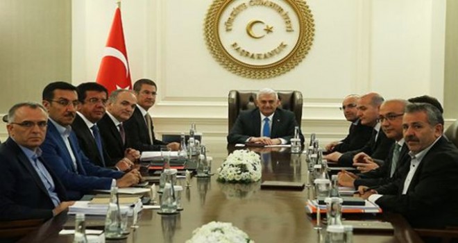 Başbakan Binali Yıldırım'ın başkanlığını yaptığı Ekonomi Koordinasyon Kurulu (EKK) ilk toplantısını pazar gecesi yaptı. Pazar akşam saat 19.50'de başlayan EKK, yaklaşık 6.5 saat sürdü. Küresel ekonomide Türkiye'nin yeri başlığı altında toplanan EKK'da genel ekonomik değerlendirme yapıldığı belirtiliyor. Ancak EKK öncesinde üye bakanların her birinin ajandasında EKK'ya sunulacak kritik başlıkları bulunuyordu. Toplantıda, azalan turist sayısı nedeniyle turizm sektörüne yönelik önlemler ve ihracatta alınabilecek kararların değerlendirildiği belirtiliyor.