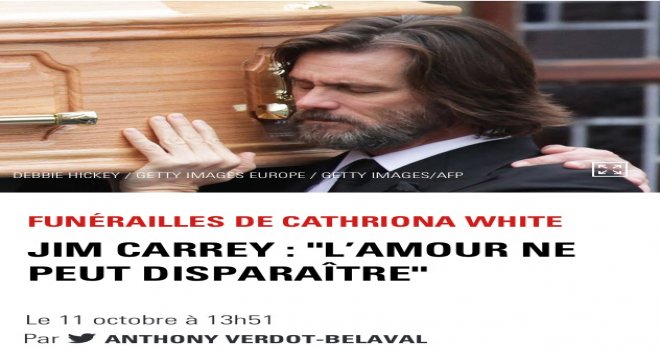 Le couple, qui se fréquentait depuis 2012, a connu des hauts et des bas. Mais début septembre, Jim a souhaité faire une pause. Respirer un peu. Quelques jours plus tard, Cathriona White mettait fin à ses jours par overdose médicamenteuse - des comprimés dont les ordonnances appartiendraient à Jim Carrey - dans son appartement de Los Angeles, laissant derrière elle une lettre à son compagnon : «Jim, je t’aime. S’il te plaît, pardonne-moi. Je ne suis pas faite pour ce monde». Elle ne supportait plus de vivre dans ce monde. Au point de le quitter prématurément.