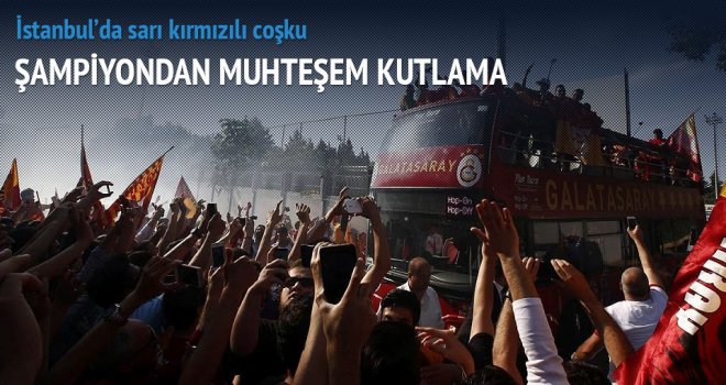 Galatasaray, Spor Toto Süper Lig'de 2014-2015 sezonu şampiyonluğunu kutlamaya başladı. Galatasaraylı futbolcuları taşıyan otobüs yaklaşık iki saatlik bir yolculuğun ardından Türk Telekom Arena'ya ulaştı.Kutlamalar sırasında sanatçı İrem Derici, Altay ve Gökhan Keser bir de konser verecek. Ünlü DJ Suat Ateşdağlı'nın hazırlayacağı programda taraftarlar, lazer ve havai fişek gösterileriyle unutulmaz bir gece yaşayacak. Tüm biletler tükendi. 50 bini aşkın taraftar, şampiyonluk kupası kaldırıldığında kendinden geçecek.