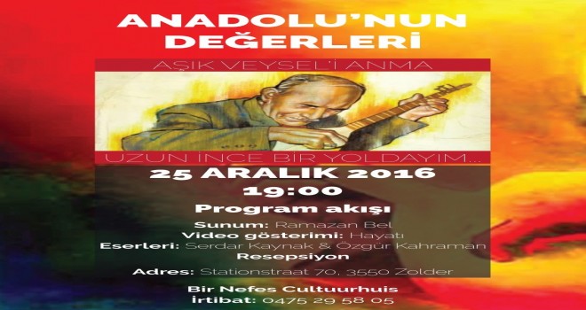 Bir nefes barışa ihtiyaç duyduğumuz bu zaman diliminde Anadolu'nun değerleri etrafında bir olmak ümidiyle Aşık Veysel'i tanıtma gecesi düzenledik. diyerek bu onemli gunumuzde.tum vatandaslari davet etti