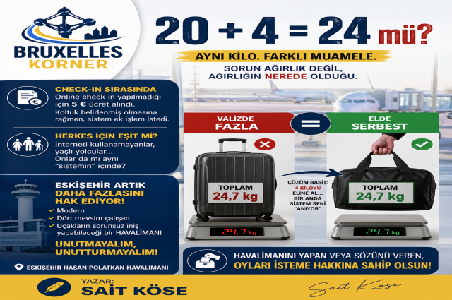 Check-in sırasında, online check-in yapılmadığı için 5 € ücret ödenmesi gerektiği söylendi.