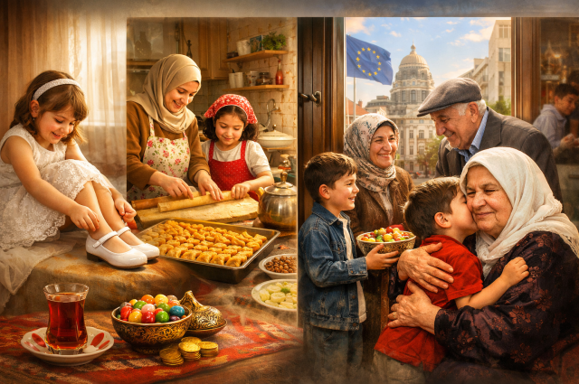 Evde büyüklerin elleri öpülür, bayramlaşılır.